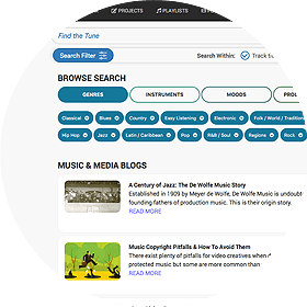 Finding music on Findthetune is the easiest thing in the world. Simply log in, use your own keywords in English and download your favorite tracks. You can even use projects to save your favorite tracks for later!